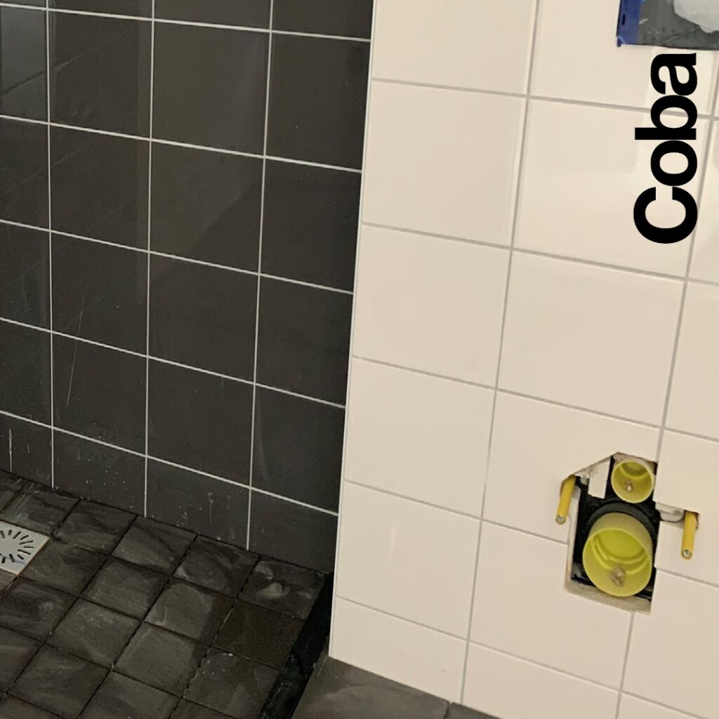 Tegelzetter Coenen Tegels en natuursteen verlijmen de tegels op dit project. Zo werken de mannen met de volgende Coba producten: ASP900/910/940, DPM800 voorstrijkmiddel, DTA215 pastalijm en CTA140 poederlijm. Onderaan de pagina vind je meer informatie over de producten. Makkelijk zat.